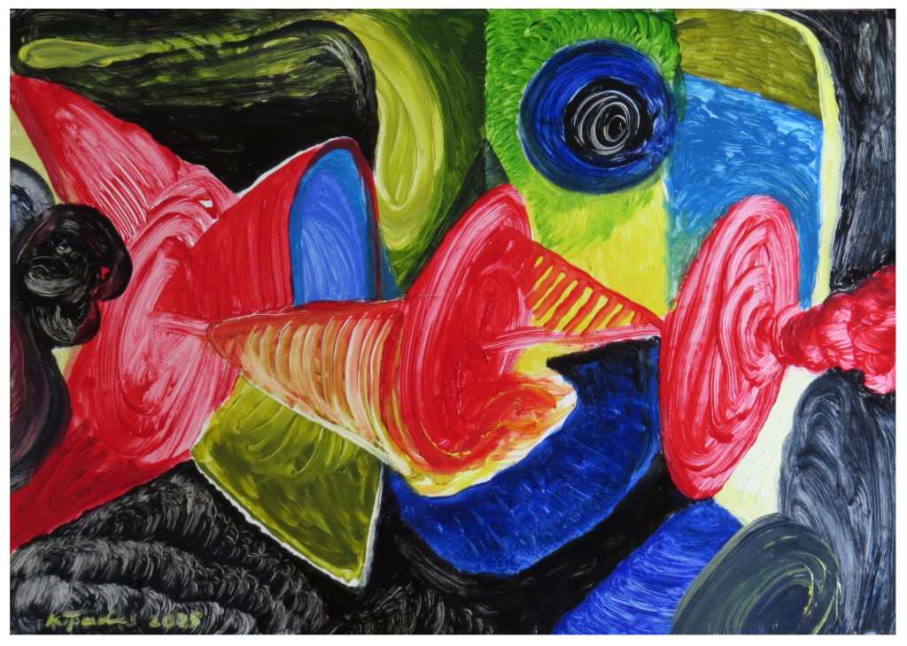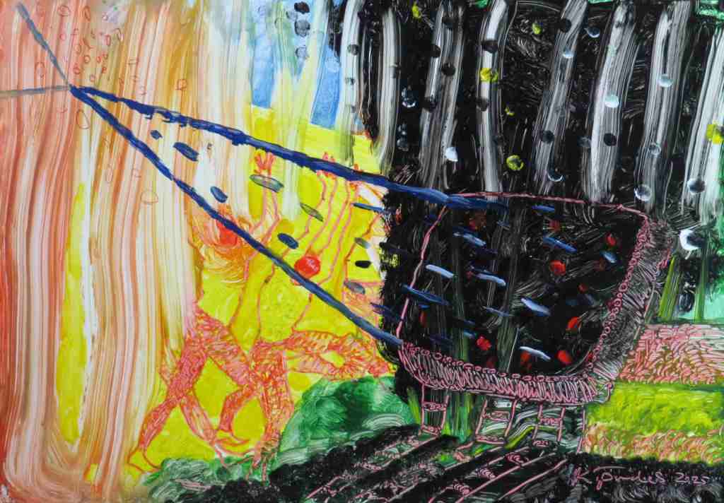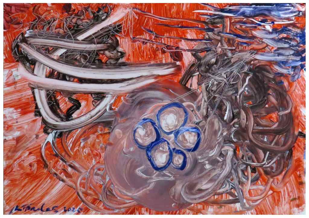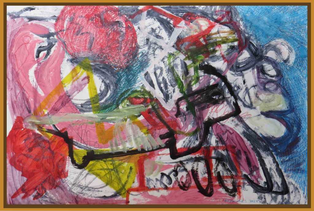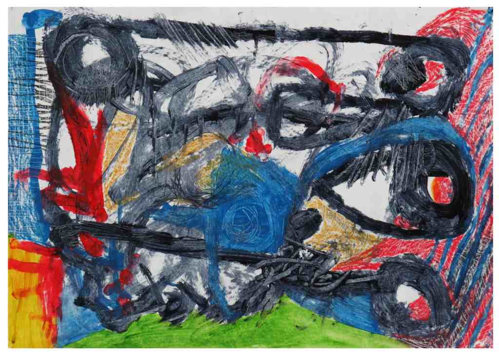 I have been experimenting with abstraction again after giving the genre a break for x2 years. The choice to work on synthetic paper unfolded of its own accord. I had heard about Yupo and had not tried it out many years later. A trip to the supply store where I was told there was none in stock but why don’t I try Tyvek instead. Not knowing yet what and how I was going to use it, I took a few sheets of the suggested Tyvek. To my surprise a technique I’d invented a few years ago where I created an engraving effect by embossing a Fabriano Rosaspina 250gms with an H6 graphite pencil and then over-laying that with a wax based compressed charcoal stick, could be created on Tyvek. However, not only that but I could take the engraved ‘effect’ a step further by printing a monotype print from the engraved/incised Tyvek that had a wax based water colour stick applied to it. I’m happy to say the outcome of my invention is very satisfying.